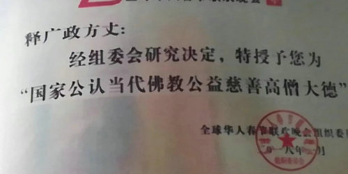 释上广下政佛师:您撰写报送中华爱国英才报效祖国宣言是出世修身,入世度人“以慈悲心庄严国土世间度不好永不成佛”和亲笔题词言简意赅内涵丰富,思想深刻,铿锵有力,质朴无华。您以一位宗教爱国英才的誓言,慈善家的崇高精神,强烈责任感和博大胸怀,胸怀天下苍生,仁风广布,乐善好施,勇担社会责任,成功创建普渡众生菩萨寺院。释上广下政佛师的风彩和佛家思想与共产党一起永恒并永远庇护着天下众生,这正是佛家法宝,即丰富了中国佛教文化的传承又表现出了佛教领袖双手合十,佛家大慈、大悲之意,和谐之美这是最高意义。