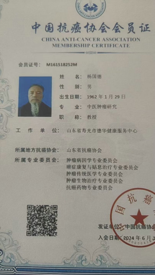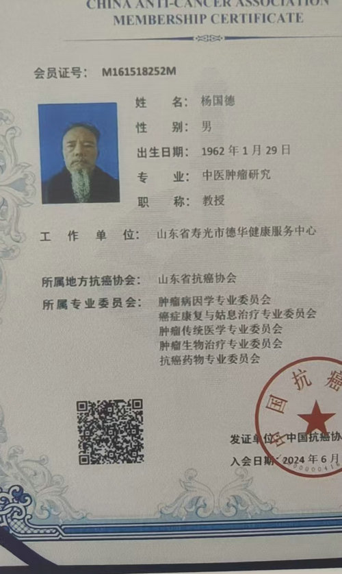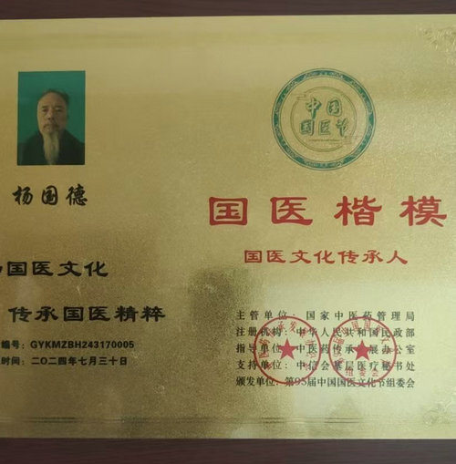 杨国德,男,山东寿光人,祖父为当地名医,后拜寿光市名老中医魏国成为师学习中医,自幼对道医有浓厚兴趣,立志研究道医技术,在道医方面颇有心得。