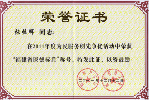 2012年1月获省总工会、省卫生厅“全省医德标兵”。