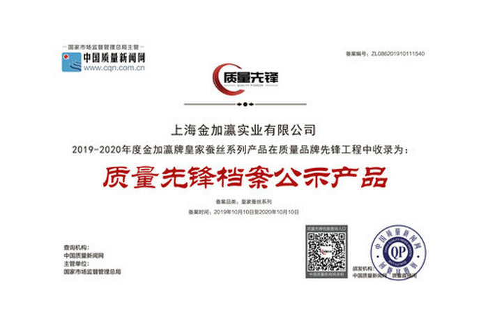 中国蚕丝-金加瀛品牌诞生于1998年,以“传承中华蚕丝文化,引领健康生活”为经营理念,凭借诚信承诺和严苛要求的品质管理,已成为国内蚕丝被行业中深受千万消费者喜爱的龙头品牌。