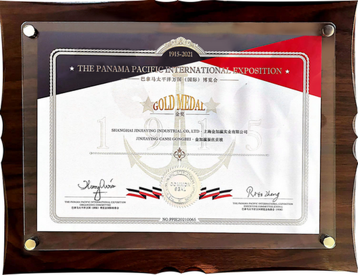 2021年11月29日金加瀛荣膺巴拿马太平洋万国(国际)博览会百货类金奖。