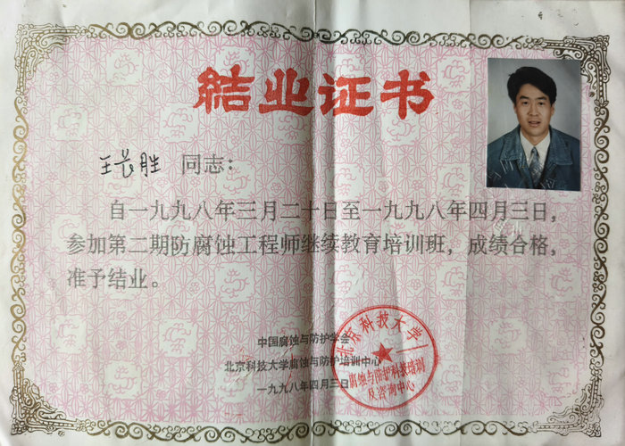 1992年4月,他前往北京发展,同年参加北京科技大学腐蚀与防护技术工程师培训班,成为行业专业工程师,此后深造取得中国社会科学院研究生院在职硕士研究生学历。