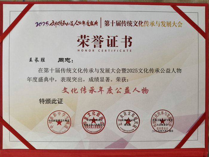 2025年6月,王长胜的成就再获认可。他受邀参加世纪大采风第25届品牌人物盛典活动,荣获2025年度风采人物荣誉称号。